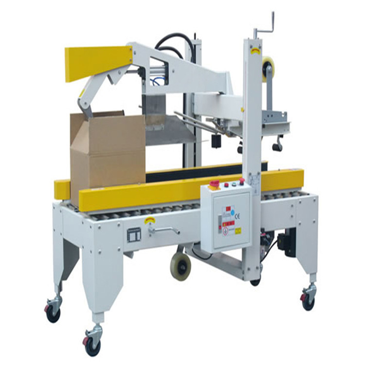全自動封箱機介紹 全自動封箱機可根據(jù)不同紙箱規(guī)格,自動調(diào)節(jié)寬度及高度,操作方便、簡單、快速。上下一字型全自動封箱,自動化程度高;單機作業(yè),適合小批量、多規(guī)格生產(chǎn)使用。采用即貼膠帶封口,封箱效果平整、規(guī)范、美觀;也可以采用印字膠帶,更可提高產(chǎn)品形象。全自動封箱機的關(guān)鍵部件是驅(qū)動電機。電機功率越大越好。是自動化包裝企業(yè)的首選。采用即貼膠帶封紙箱封口,經(jīng)濟快速、容易調(diào)整,可一次完成上、下封箱動作,也可以采用印字膠帶,更可提高產(chǎn)品形象。封箱機的關(guān)鍵部件是驅(qū)動電機。電機功率越大越好。