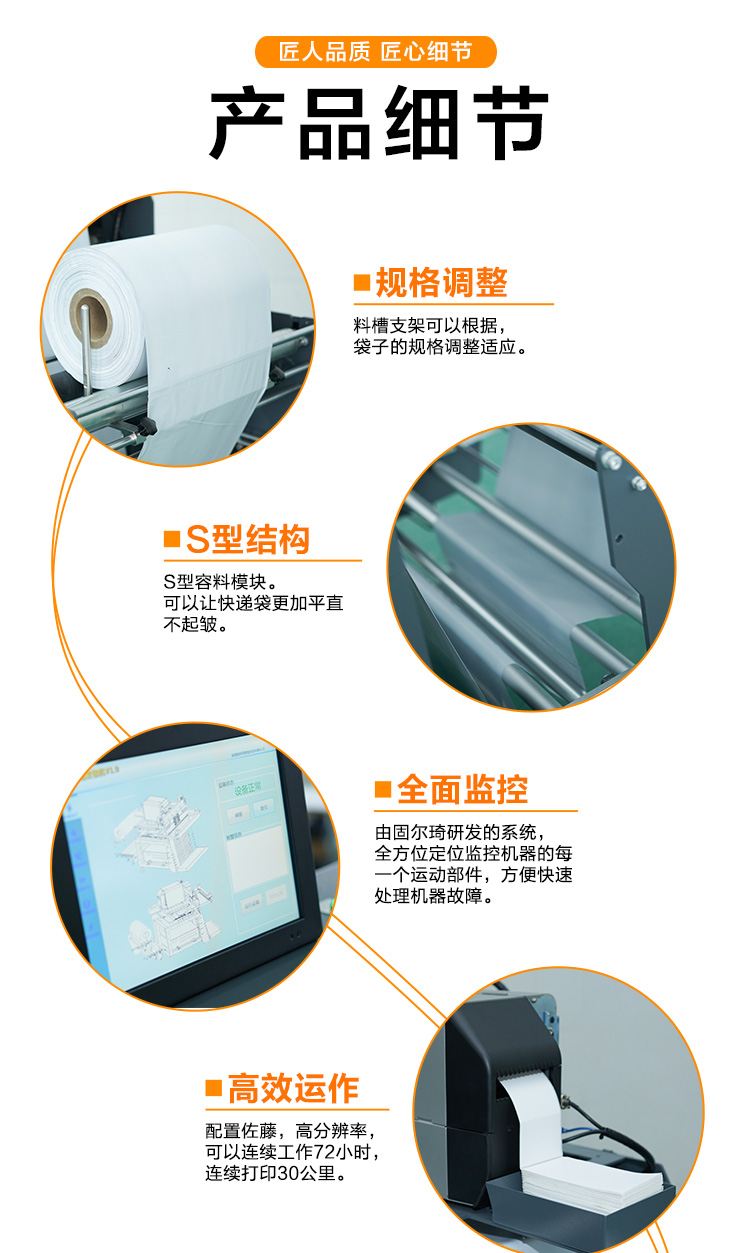 該智能化快遞打包機(jī),該設(shè)備將是自動(dòng)化包裝機(jī)械設(shè)備行業(yè)的里程碑之作,智能快遞打包系統(tǒng)可以提供貨品掃碼、貨品稱重、套裝塑料袋、對(duì)塑料袋自動(dòng)封口、自動(dòng)打印面單、自動(dòng)粘貼面單以及貨品自動(dòng)輸送等一體化解決方案。同時(shí),可根據(jù)客戶需要,自動(dòng)對(duì)接電商訂單和企業(yè)ERP 或 WMS 系統(tǒng),為客戶提供貨品的塑料袋包裝發(fā)貨整體解決方案。