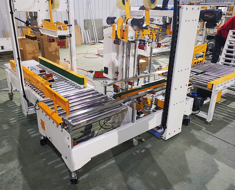 ? ? ??自動(dòng)四角邊封箱機(jī)工型封箱機(jī)的成功研發(fā),使封箱機(jī)在面對(duì)特別行業(yè)需進(jìn)行角邊封箱,特別是針對(duì)與電子產(chǎn)業(yè)和需走海運(yùn)的行業(yè),防塵、防潮、防氧化、防酸堿度;更具紙箱規(guī)格,手工調(diào)節(jié)寬度及高度,方便、快速;90°轉(zhuǎn)角機(jī),氣缸自動(dòng)推箱;紙箱上下四個(gè)角邊同時(shí)自動(dòng)封箱、撫平、快速、平穩(wěn);可與多款機(jī)型聯(lián)機(jī)組合完成工字型封箱機(jī)。