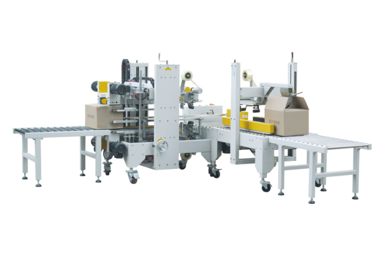 自動折蓋封箱機工作原理是自動折合紙箱上蓋的封箱機,該機主要的功能就是自動折合上蓋、自動
